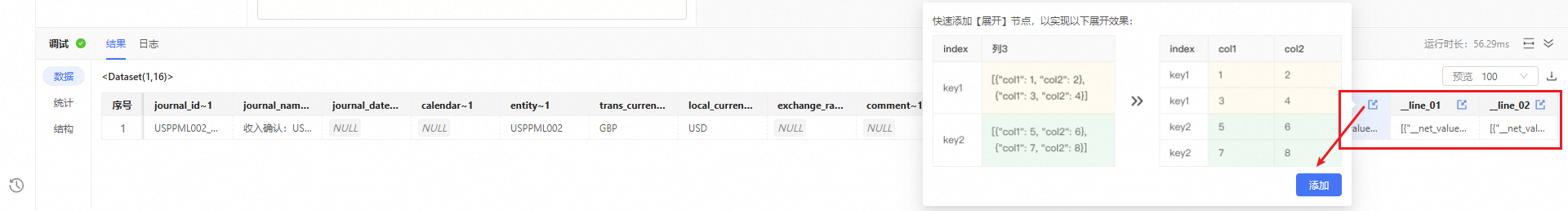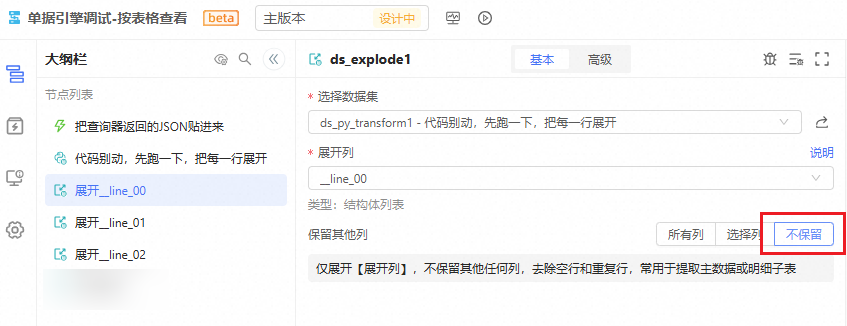 展开节点中可以设置不保留其他列,专注排查子表的数据是否正确