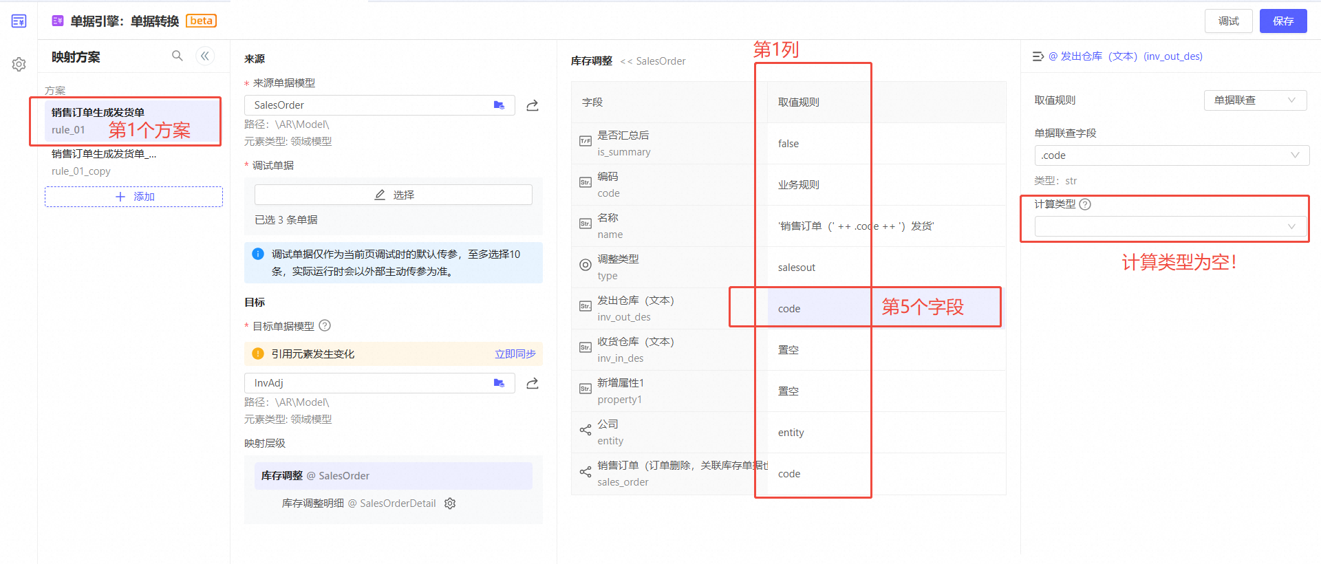前期版本的单据引擎没有保存检验机制,因此可能会在保存时,右侧弹出形如body缺少字段:mappingScheme.0.fieldMapping.0.fields.4.UserField.rule.RuleDocumentLinkage.agg的报错,排查方法: