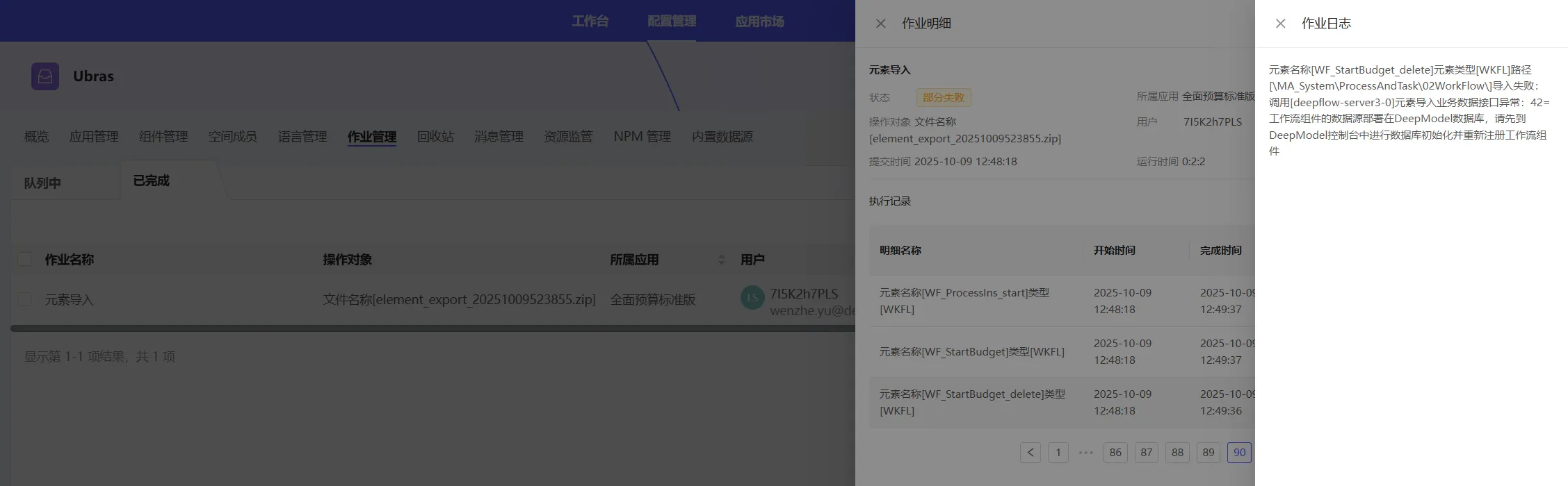 可至空间管理->作业管理,查看导入日志