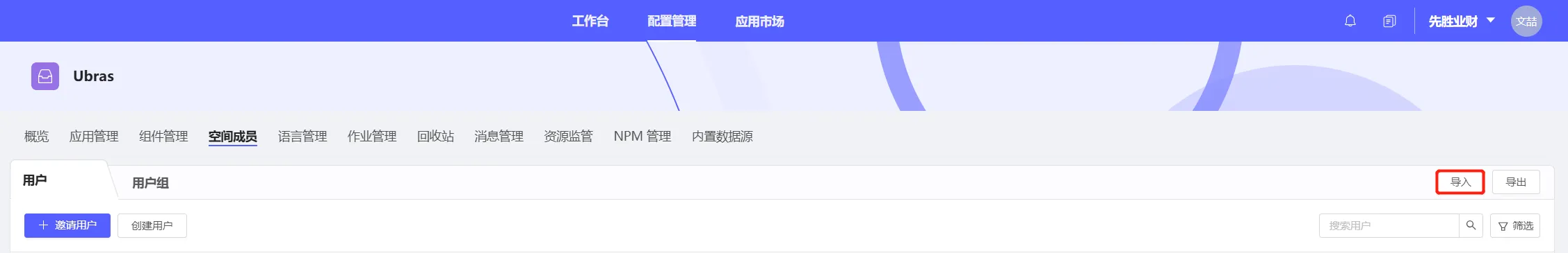 注意:如果跨空间迁移应用,导入前需要先配置目标空间,包括:内置数据源、组件管理、空间成员、消息管理、NPM管理等