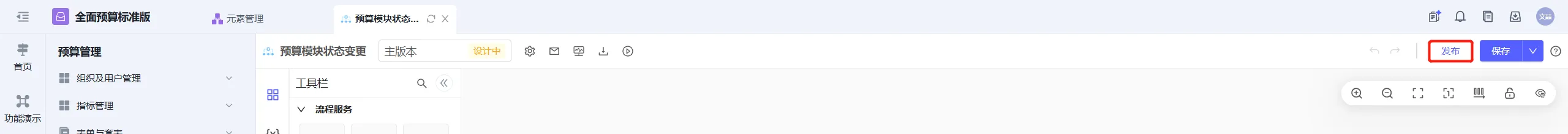 目标应用进入每个工作流元素,点击发布,并加载至主版本