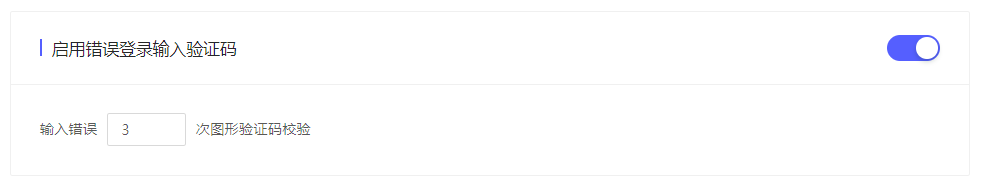 输入错误验证码(1 ~ 10次以内)配置开启后用户输入错误密码次数超过配置次数后需要用户再次输入验证码。