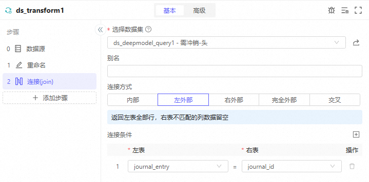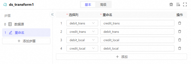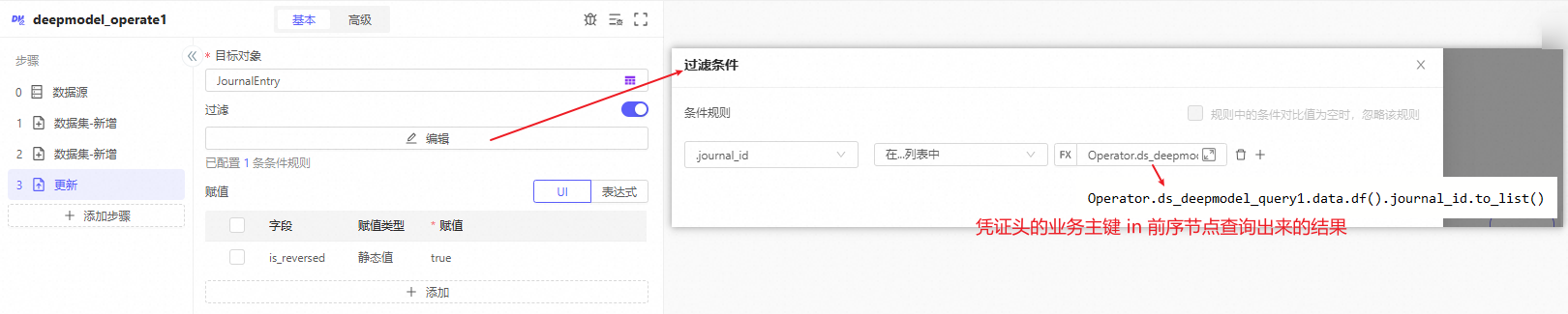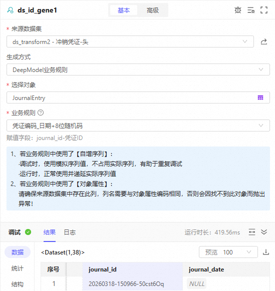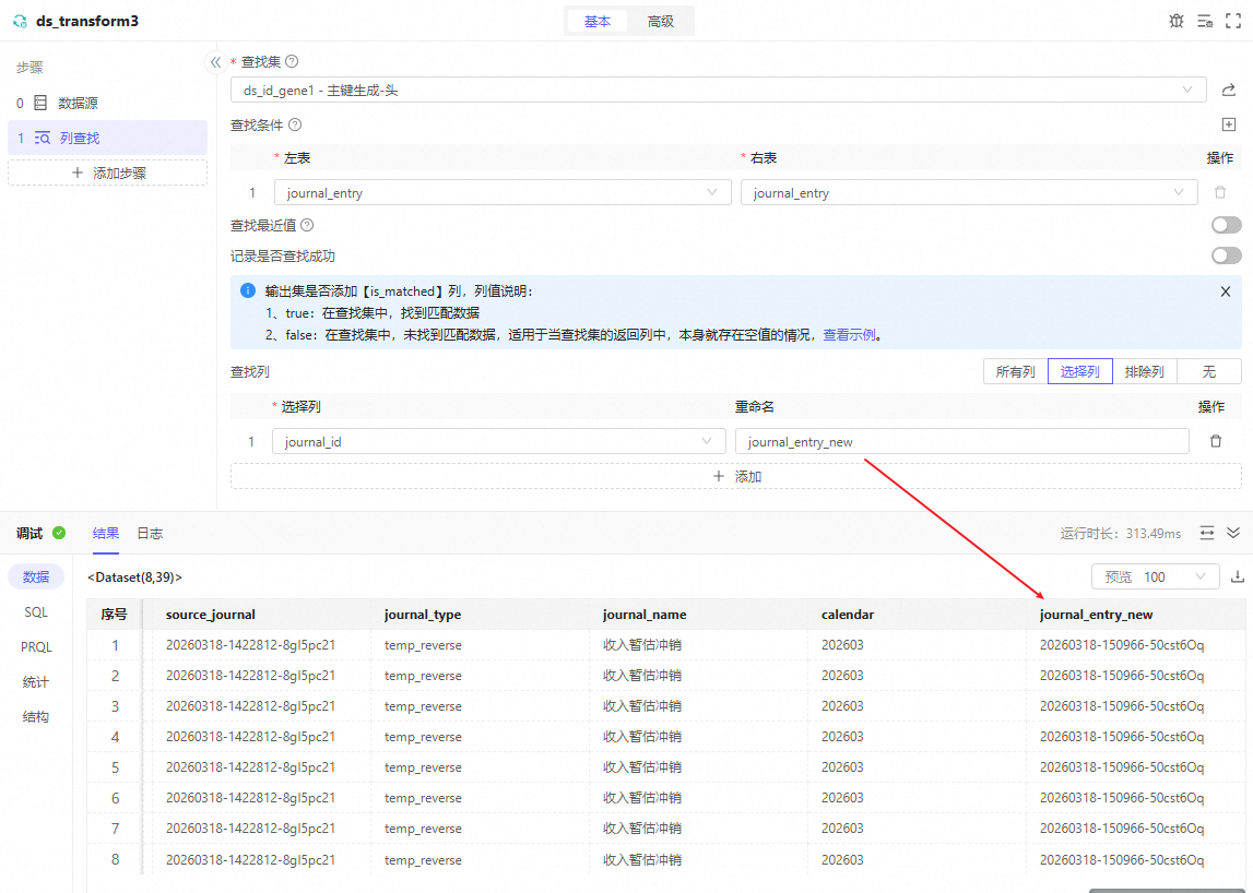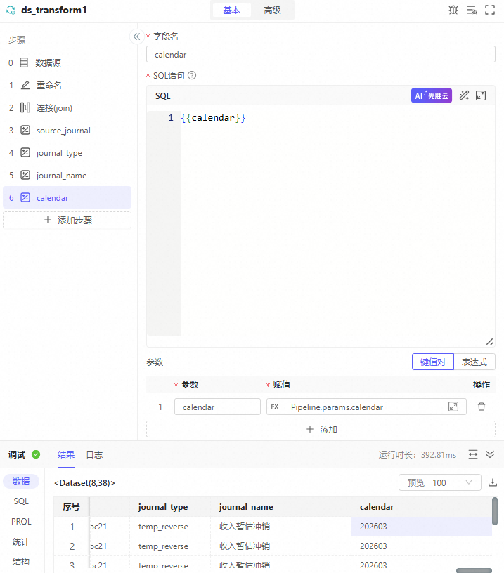 2. 其他字段更新:用列计算实现journal_type='temp_reverse'journal_name='收入暂估冲销'calendar=Pipeline.params.calendar(在SQL中用预置变量需要先定义参数)