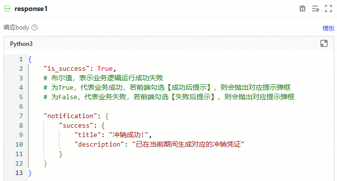 自定义一个执行后返回的响应内容,例如: