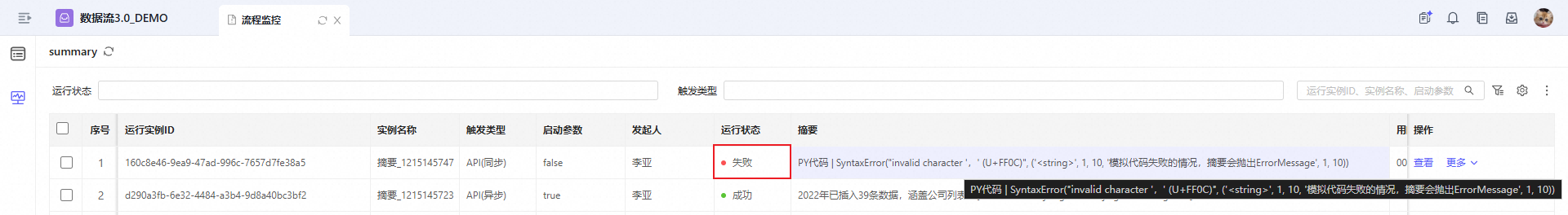 应用于流程监控的【摘要】列,运行结果作为摘要内容展示在该列中;