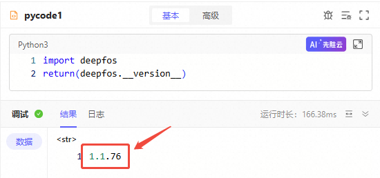 调试该节点,结果即为deepfos的版本号;