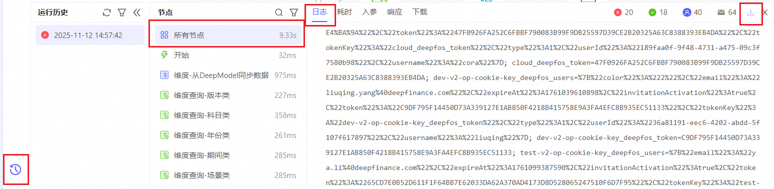 添加公共脚本后,再重新运行节点,节点日志中会包含debug级别的日志,有调用其他组件服务的cURL,复制此节点的所有日志,将其附在工单上。