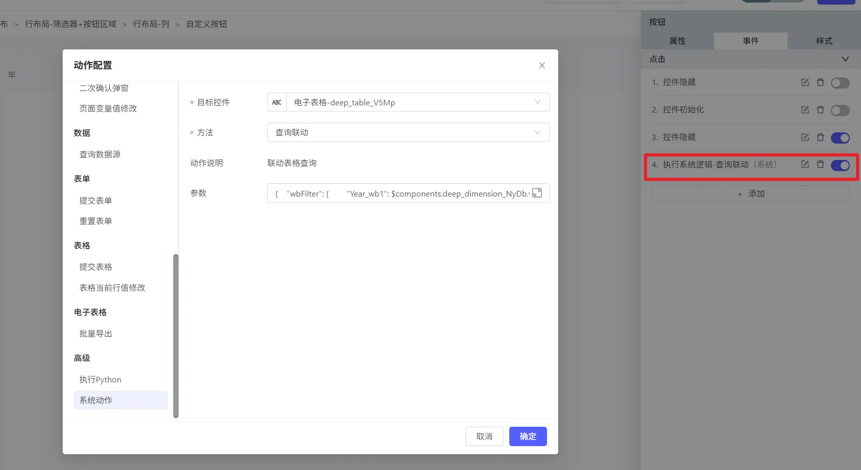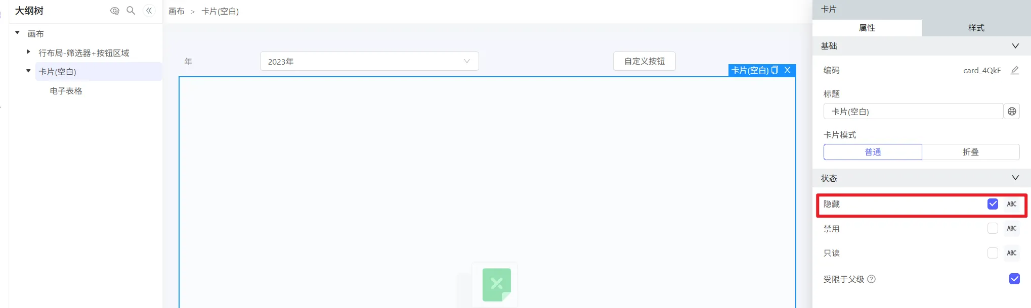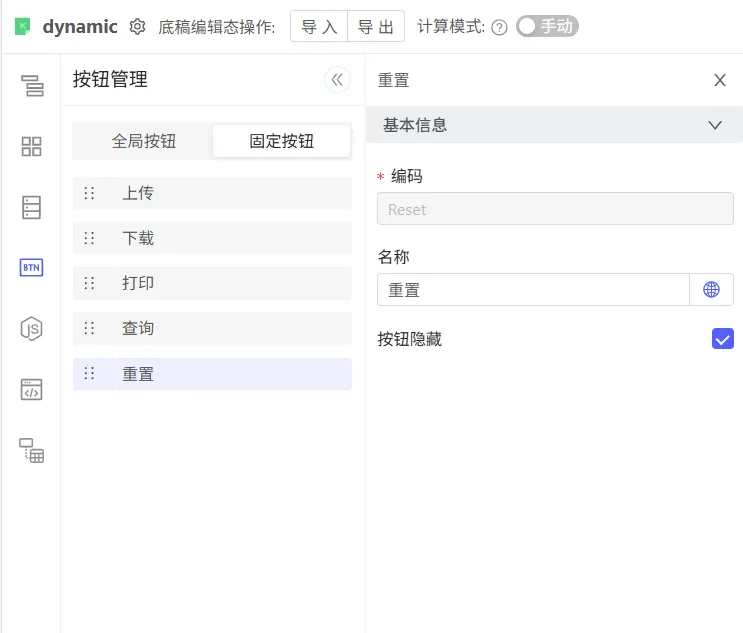 在 筛选区域  和 标题区域 均显示的情况下,也可以自行配置按钮隐藏。
