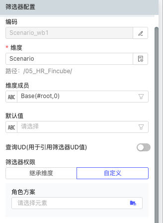维度权限方案用于更方便地控制不同角色的用户在查询维度成员时的可见范围。在电子表格或UX等展现层,维度可自定义权限,但由于配置较多,因此也支持直接在维度上设置默认的权限方案。 配置后,该维度的所有成员查询结果会根据当前登录用户的角色自动过滤,用户只能看到被授权的成员。